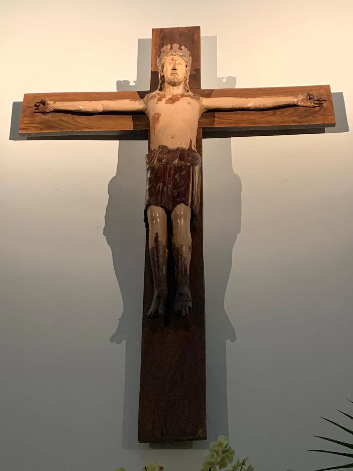 A religious cross with a crucifix Description automatically generated