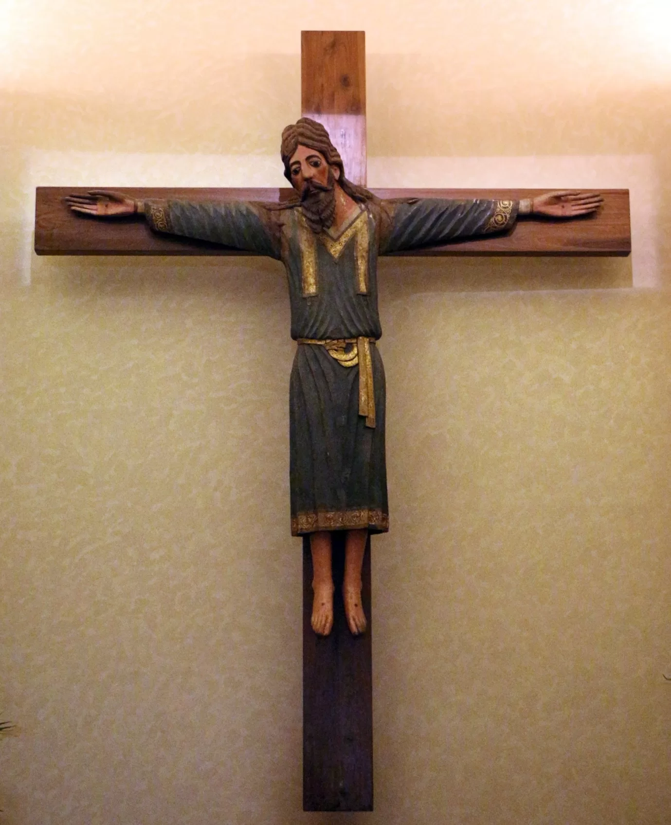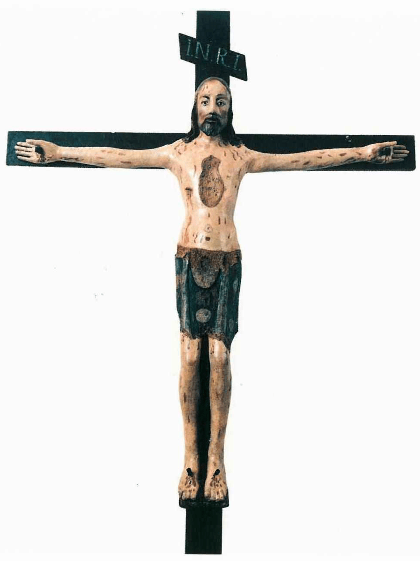 A religious cross with a crucifixion Description automatically generated