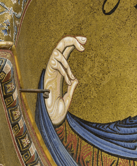 Cristo Pantocratore, Duomo di Monreale, mosaico (1180-1190). Detail.